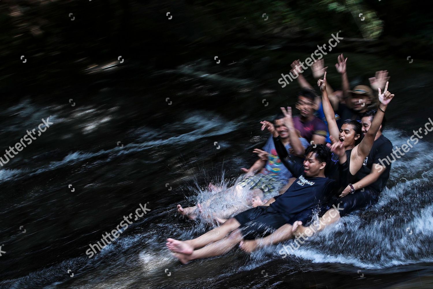 Group Malaysians Take Slide Flowing River Water Editorial Stock