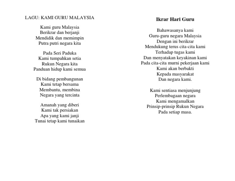 Lirik Lagu Kami Guru Malaysia Hd Youtube