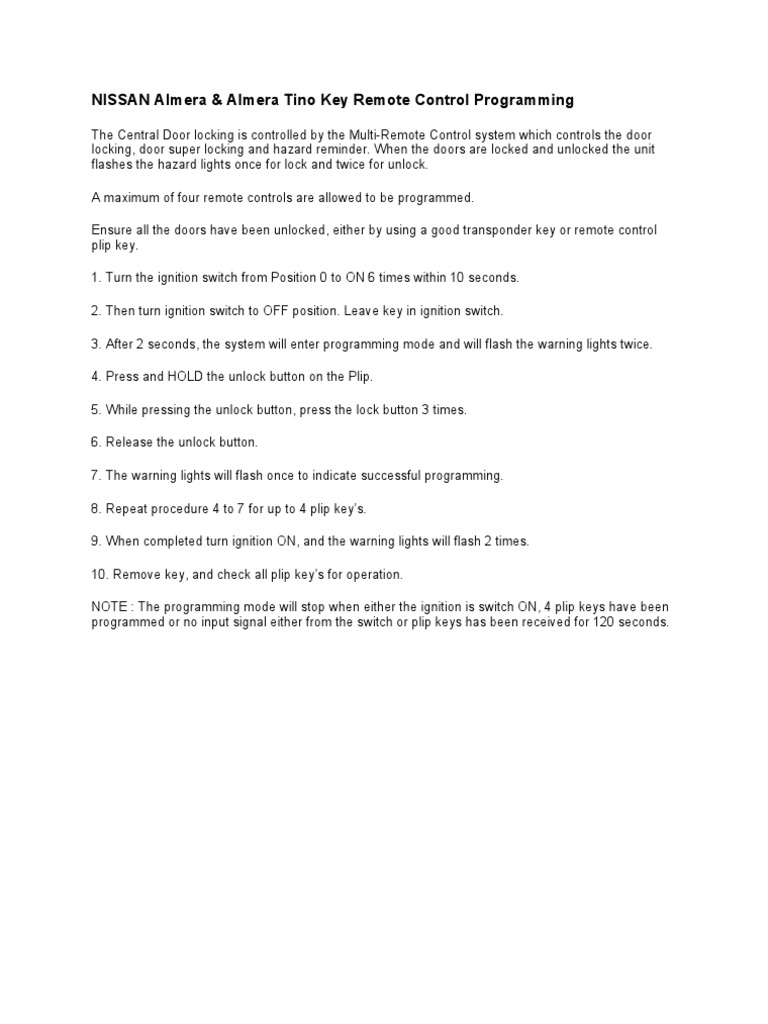Programme Nissan Almera Central Locking How To Youtube