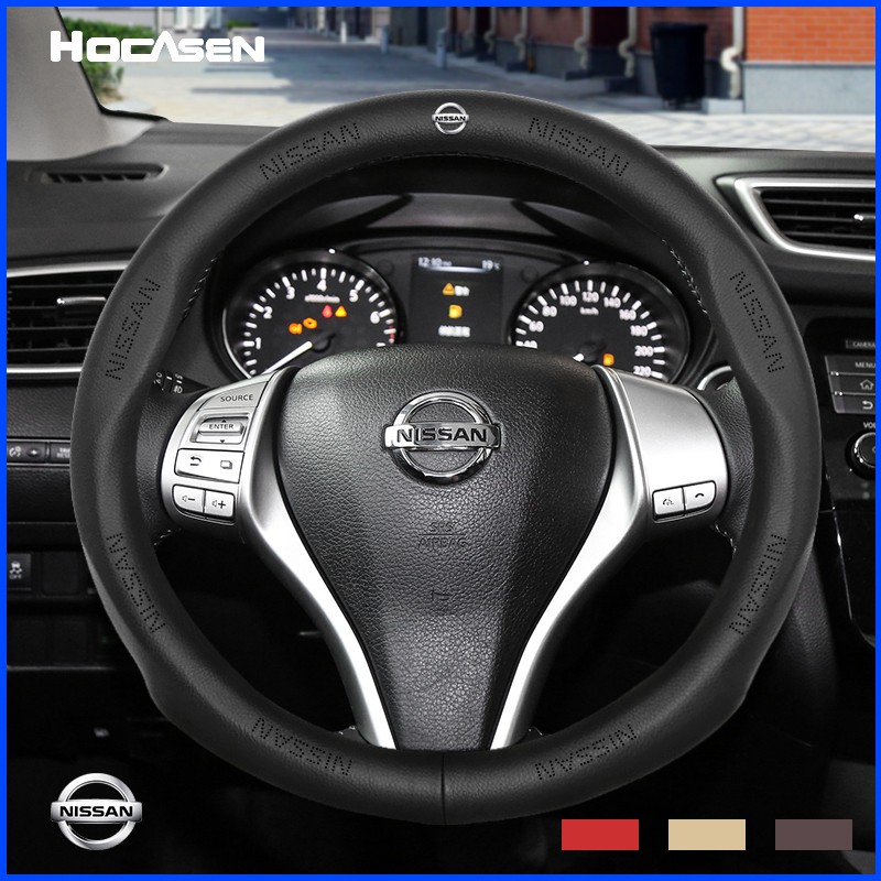 Leather Car Steering Wheel Cover 38cm For Nissan Almera Grand