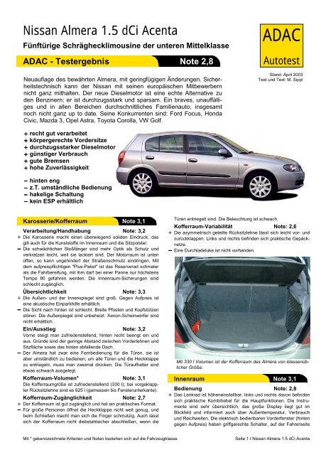 Umfassender Test Nissan Almera 1 5 Dci Acenta 3t Adac