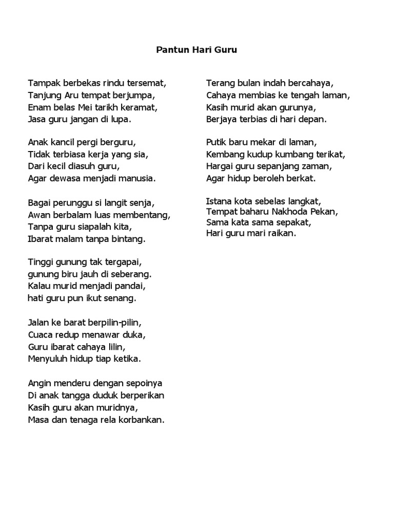 Hari Guru Gurindam Puisi Pantun