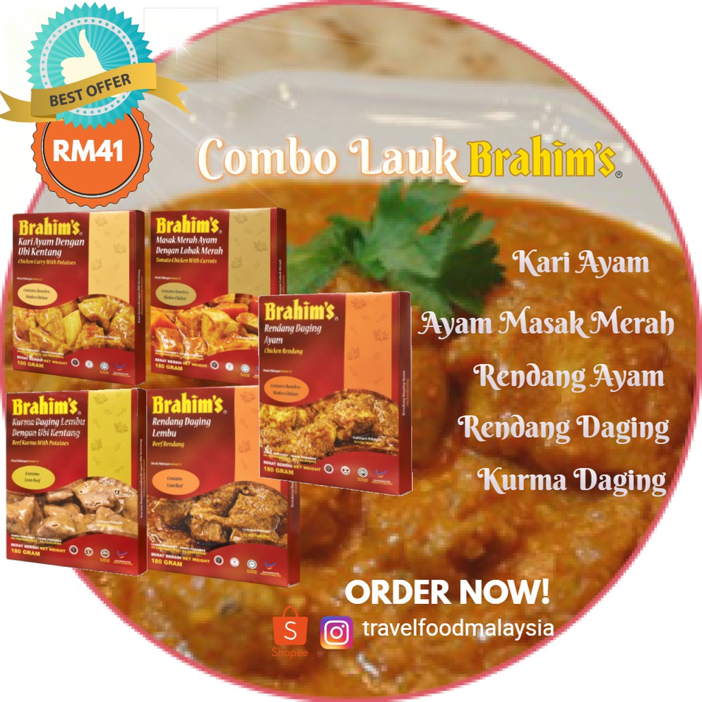 Combo 5b Brahims Lauk Instant Meal Rendang Kari Ayam Sambal Travelfood Halal Shopee Malaysia