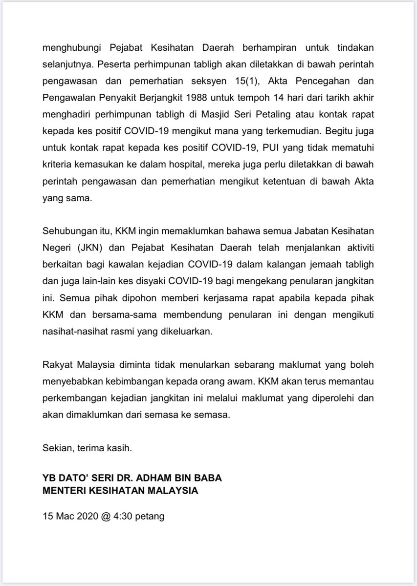 Kkm Gesa Peserta Tabligh Di Masjid Sri Petaling Lalui Pemeriksaan