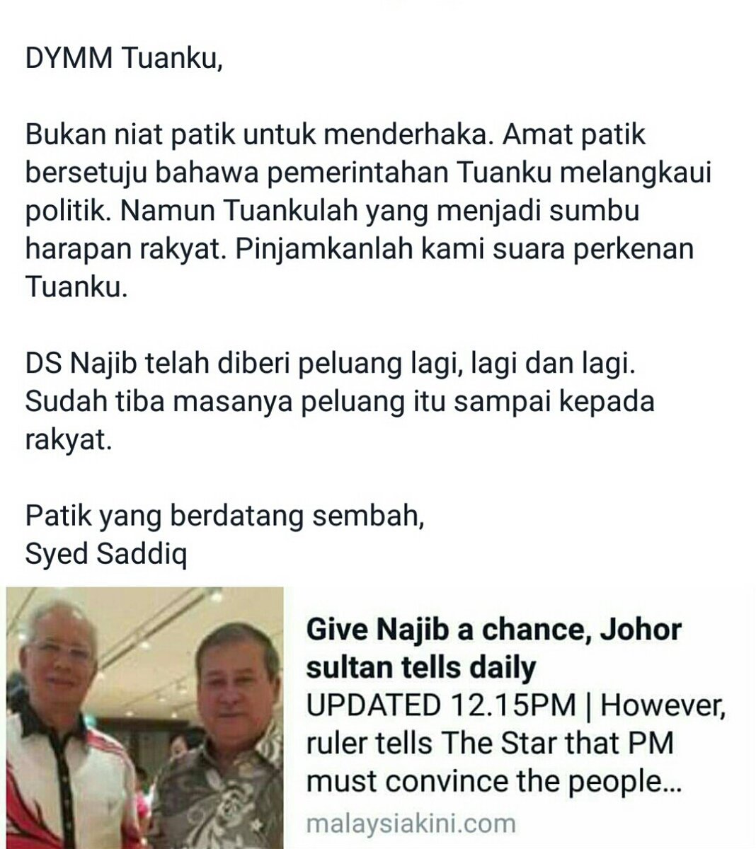 Syed Saddiq A Twitter My Open Letter To Dymm Tuanku Sultan Johor