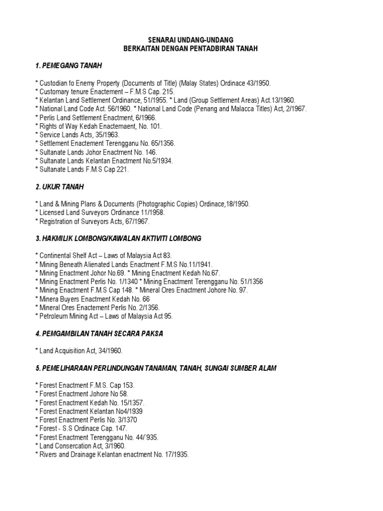 Senarai Undang Undang Berkaitan Dengan Tanah Malaysia